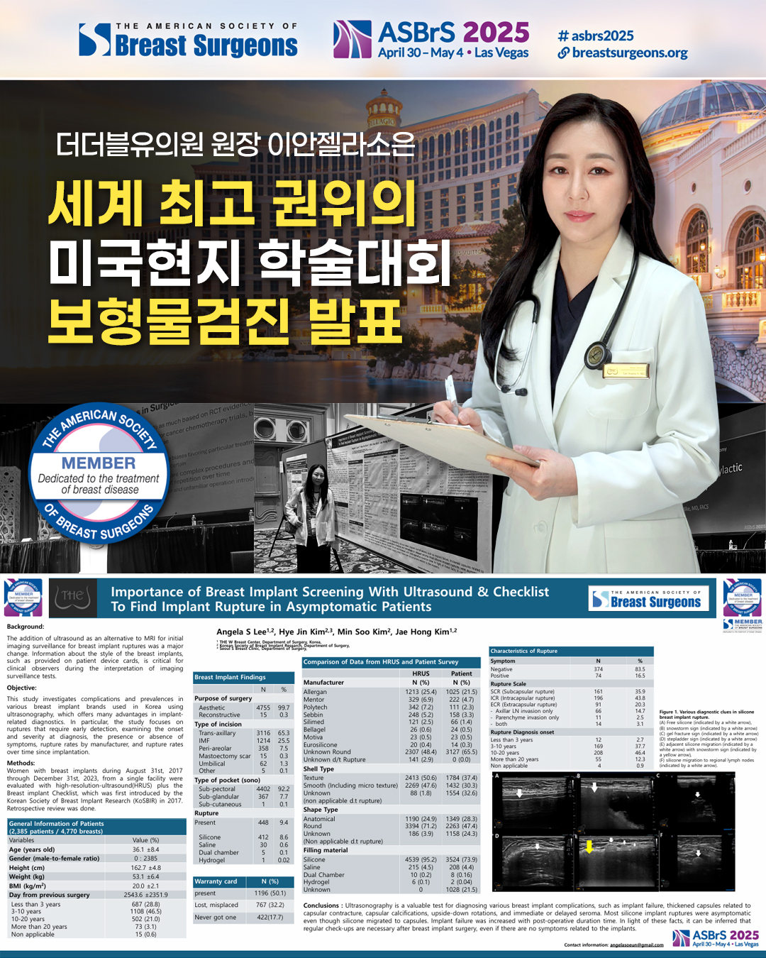 「 초음파를 이용한 가슴 수술 전 보형물파열진단의 중요성 」 논문교신저자- 출판일 2022.08