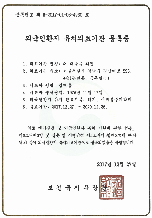 저희 더더블유 클리닉은 2017년 12월 27일 기준으로 등록이 되어 있으며,